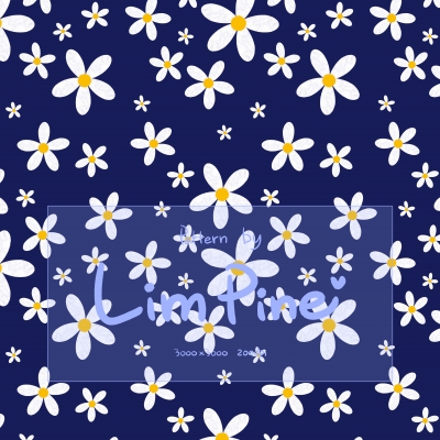 차분한 네이비 배경 위에 화사한 데이지가 어우러진 감성 플로럴 패턴입니다