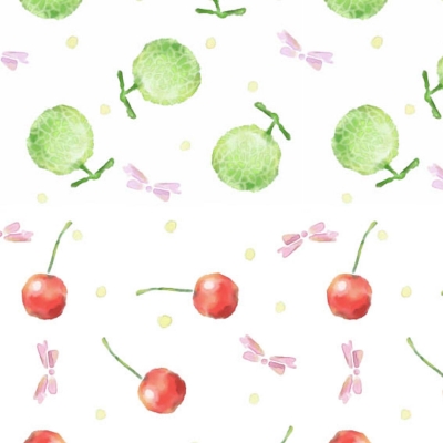 인형 옷이나 인형 의류, 소품에 어울리는 작은 과일 무늬가 두 가지 들어간 패턴입니다.
