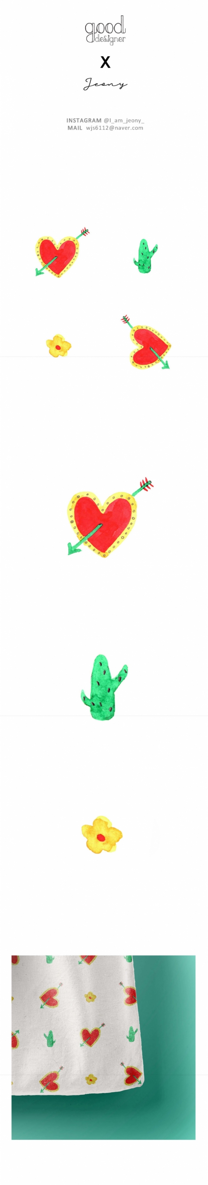 패턴설명 큐피드 화살이 꽂힌 하트와, 선인장, 그리고 꽃이 들어간 패턴입니다.