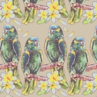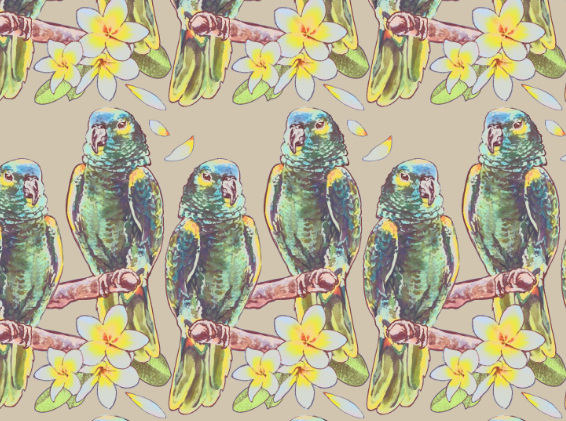 서식지가 가까운 것끼리의 아오보우시인코와 프르메리아를 조금 살린 알로하 셔츠와 같은 칼라로 디자인했습니다.