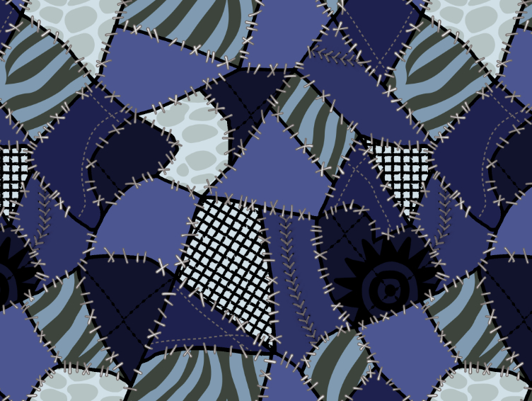 정크 분위기와 할로윈 같은 공포 분위기가있는 패치 워크 무늬입니다.
