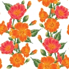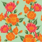 유려한 진주 동백꽃 진주가 어우러진 곡선 배경과 분홍빛&붉은빛 동백꽃 패턴