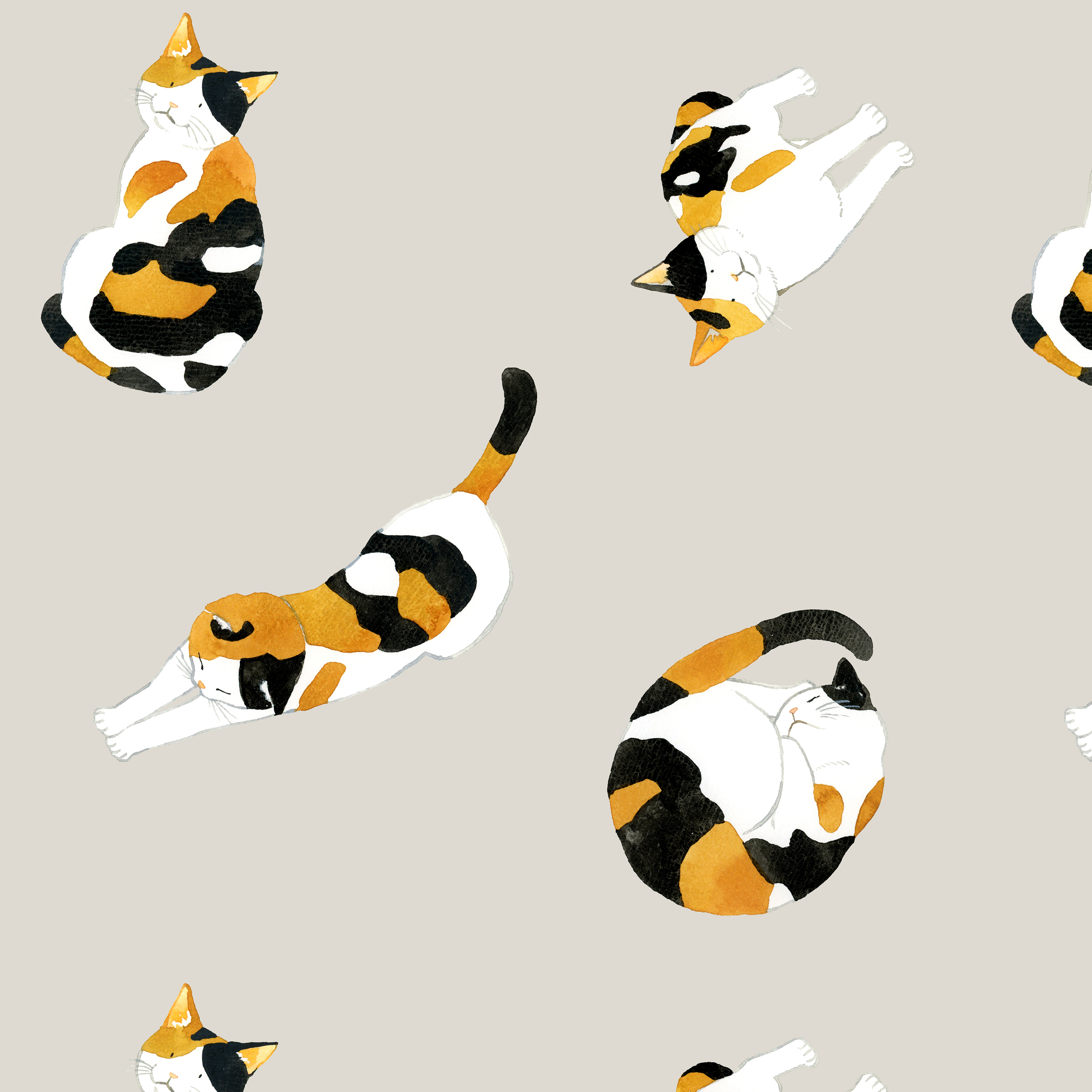 패턴설명 투명 수채로 그린, 느슨하고 귀여운 삼색 고양이 패턴입니다.