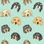 닥스훈트 6종 전체에 닥스훈트 6종의 얼굴이 그려진 디자인입니다.