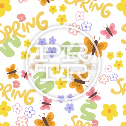 안녕 봄! 나비와 꽃들의 춤 생동감 넘치는 봄의 기운을 담은 'SPRING' 레터링 패턴 디자인입니다.