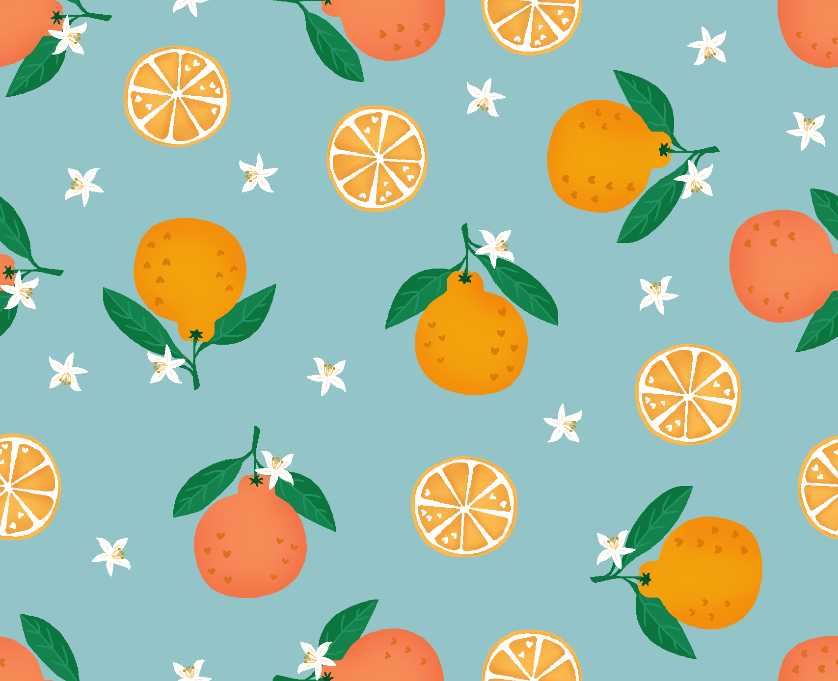 새콤달콤 작은귤과 꽃 새콤달콤 작은귤과 꽃의 패턴 디자인입니다.