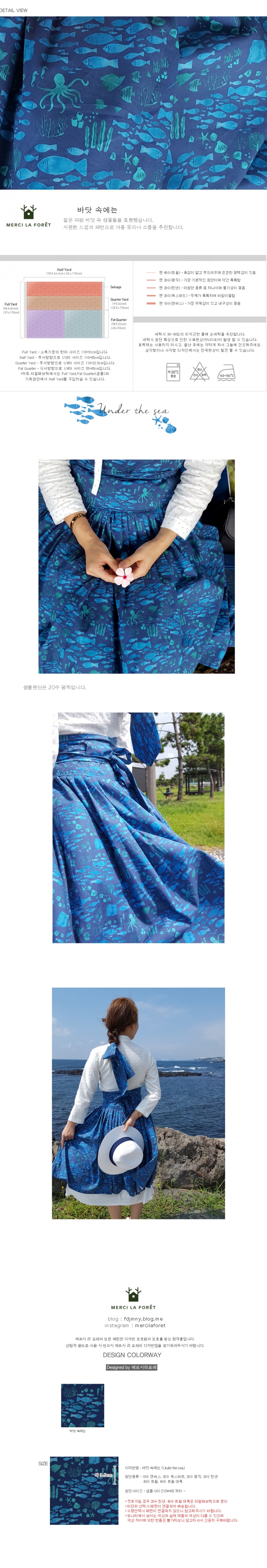 바닷 속에는 (Under the sea) 짙은 파랑의 바닷 속 생물들을 청량감 있는 패턴으로 디자인